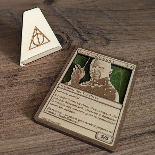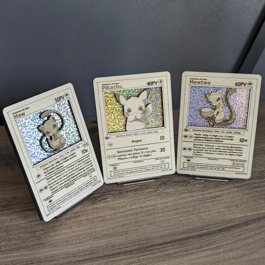 Carte 3D en bois Pokémon avec fond holographique et présentoir Pokédex