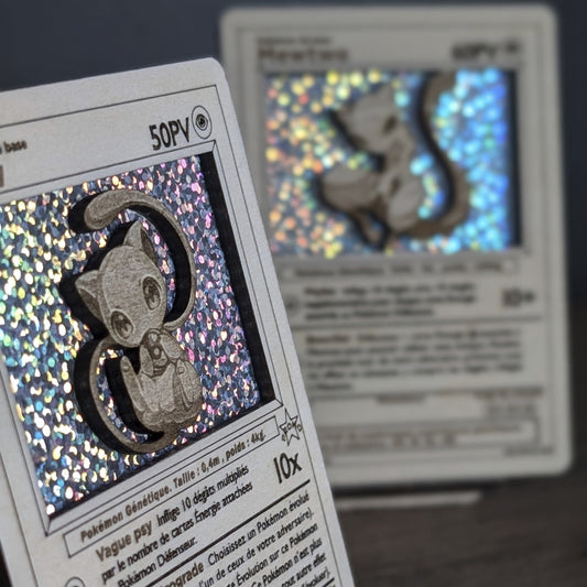 PokéMad – Carte Pokémon en bois avec fond holographique + Présentoir Pokédex