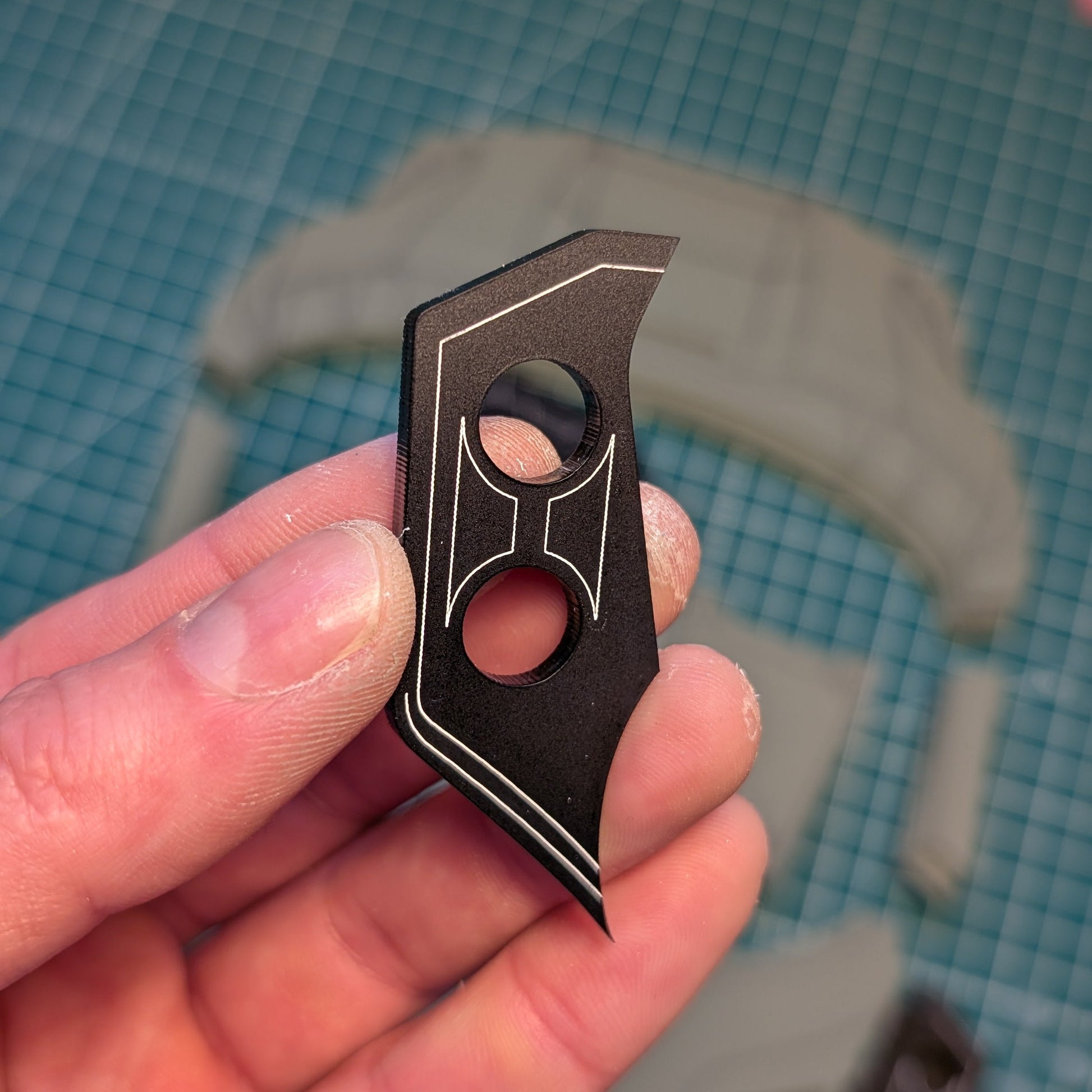 Composé de 24 pièces, l'assemblage fait la part belle aux différentes matières avec cette acrylique matte qui contraste naturellement avec la brillance miroir de la visière. La profondeur créée par l'empilement des couches et la finesse des traits encrés à la main créé une dimension de détails pour rendre cette pièce encore plus impressionnante!